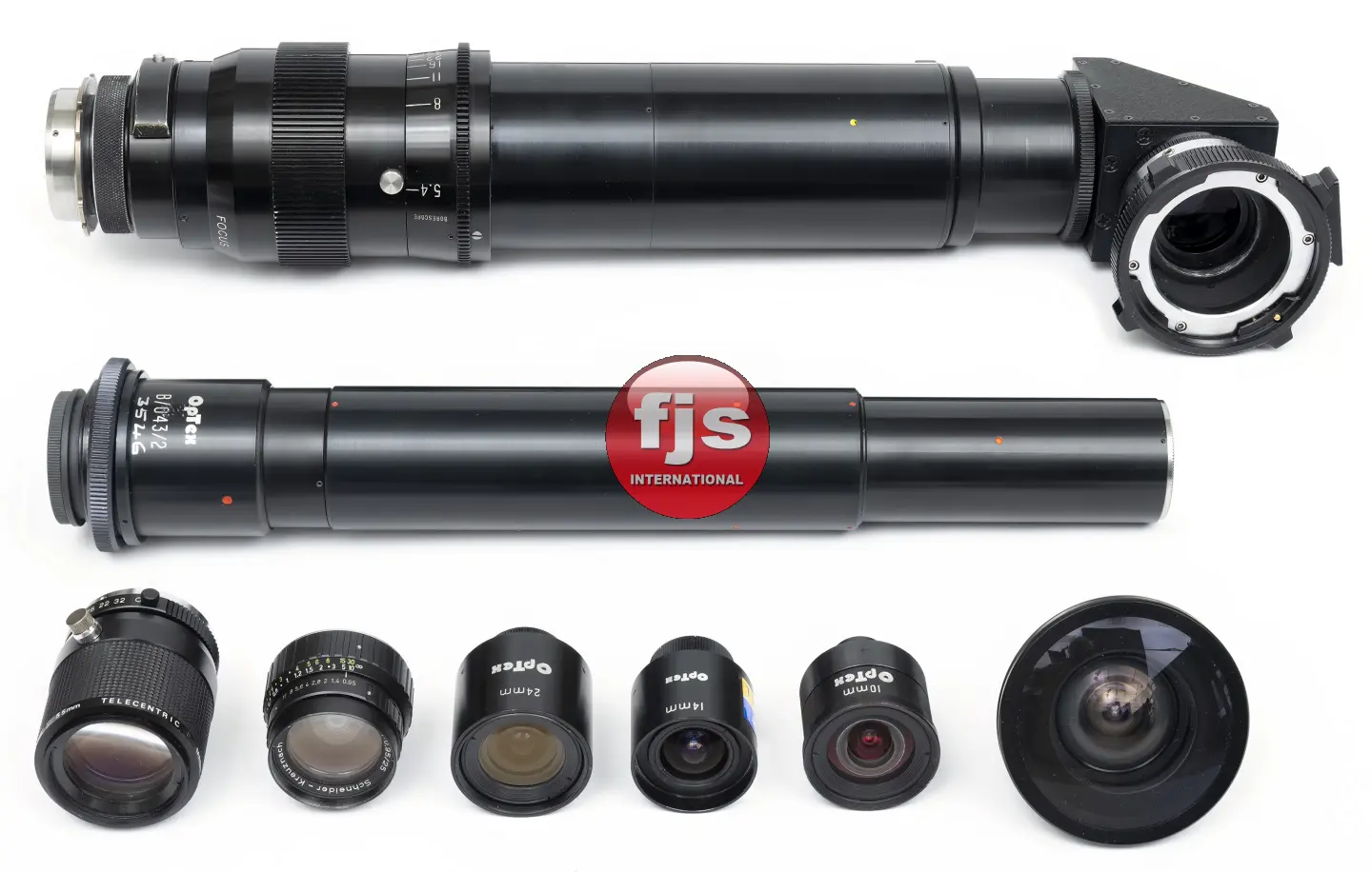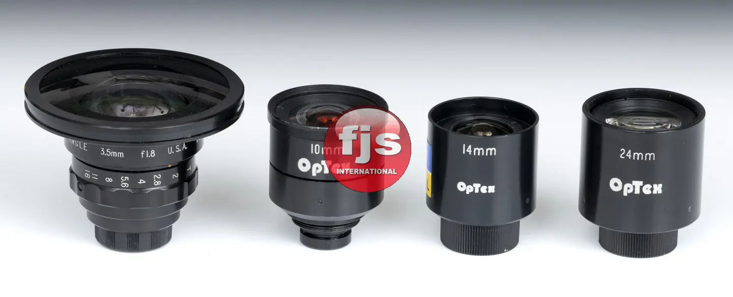 The kit comes with a Century 3.5mm T2 lens,the Optex 10mm, Optex 14mm and Optex 24mm, Schneider Xenon 25mm F0.95 and a 55mm Telecentric lens